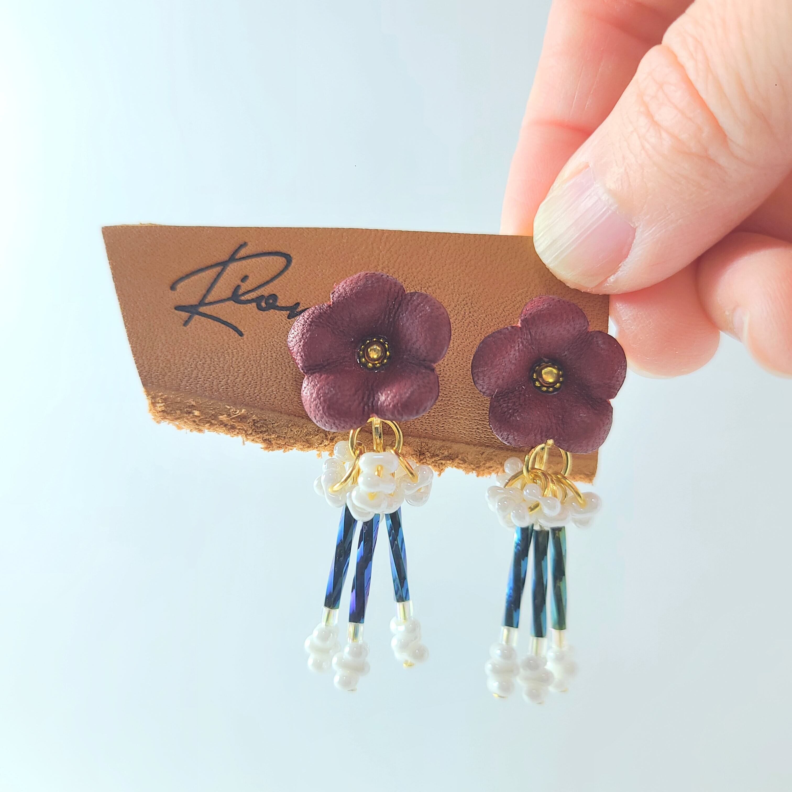 革の花が持つ優雅さとビーズの煌めきが、あなたの魅力を一層引き立ててくれることでしょう。
