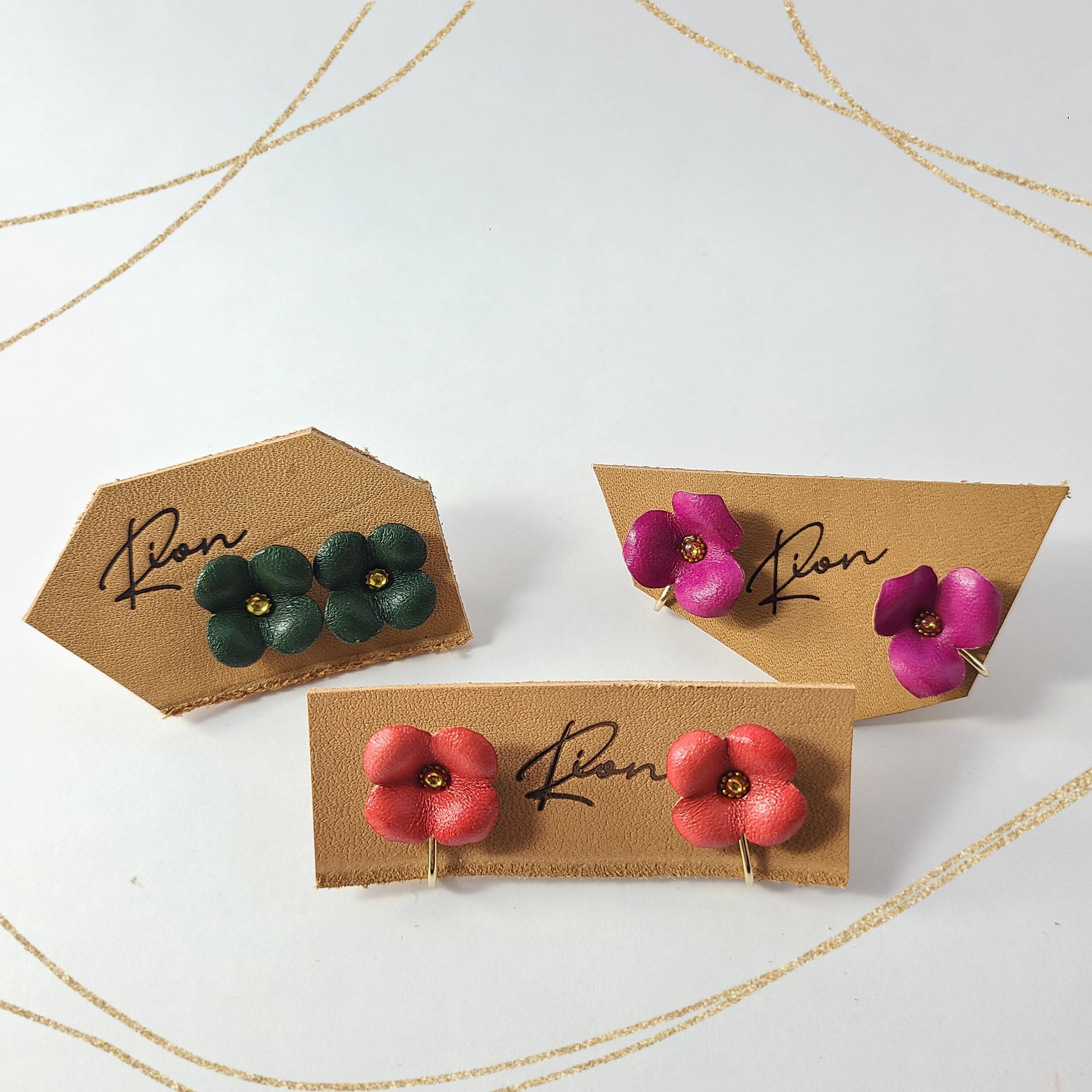 本革で一つ一つ丁寧に作られた花びらは、繊細な立体感が特徴です。
